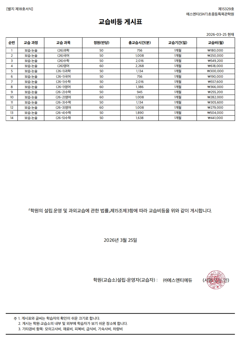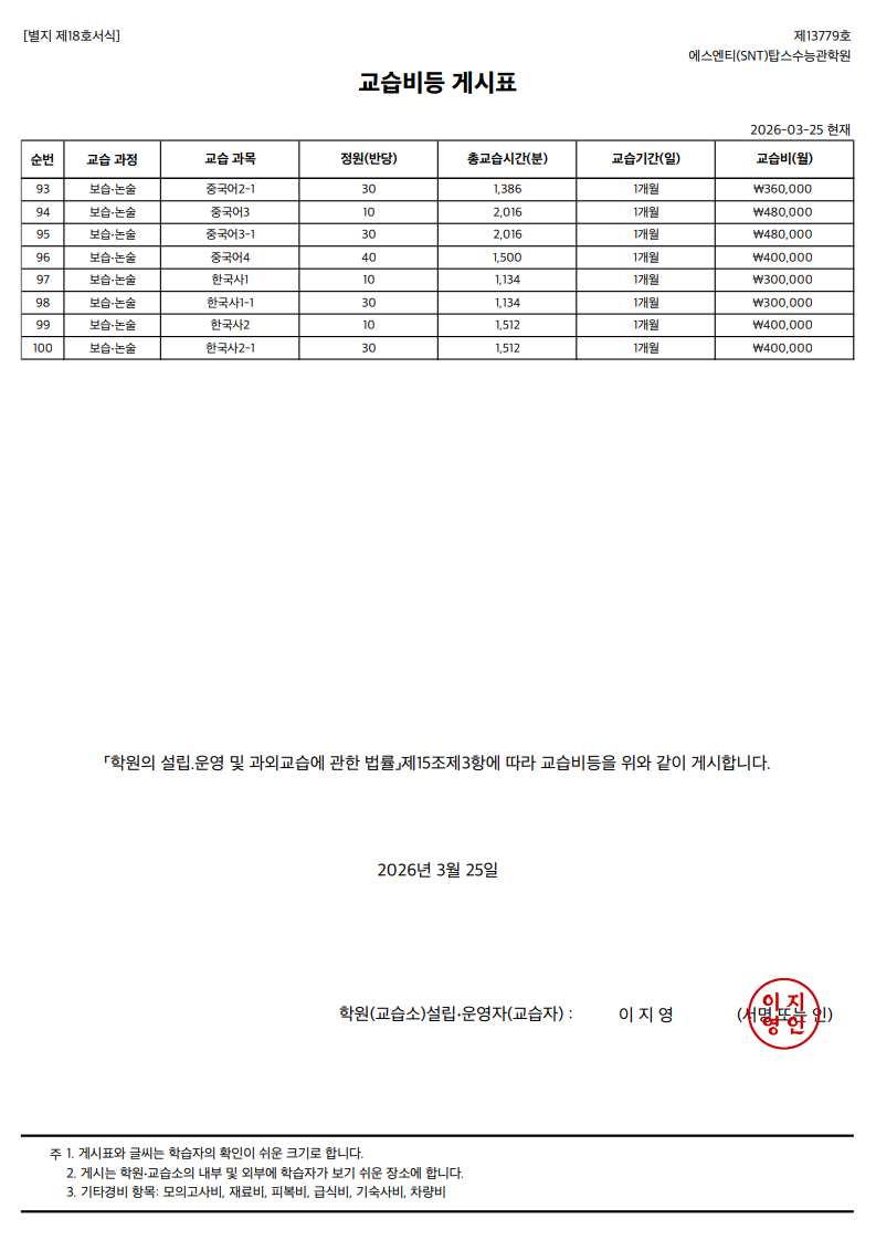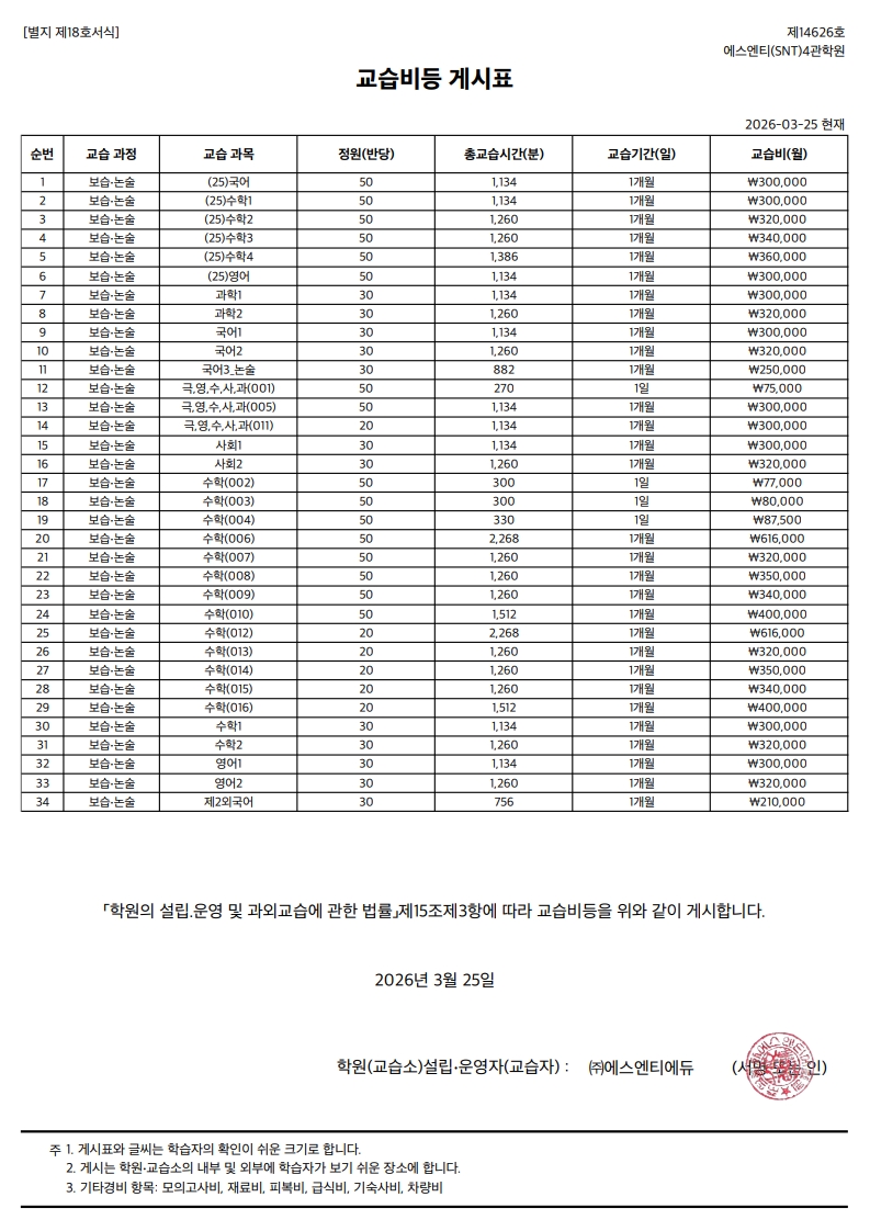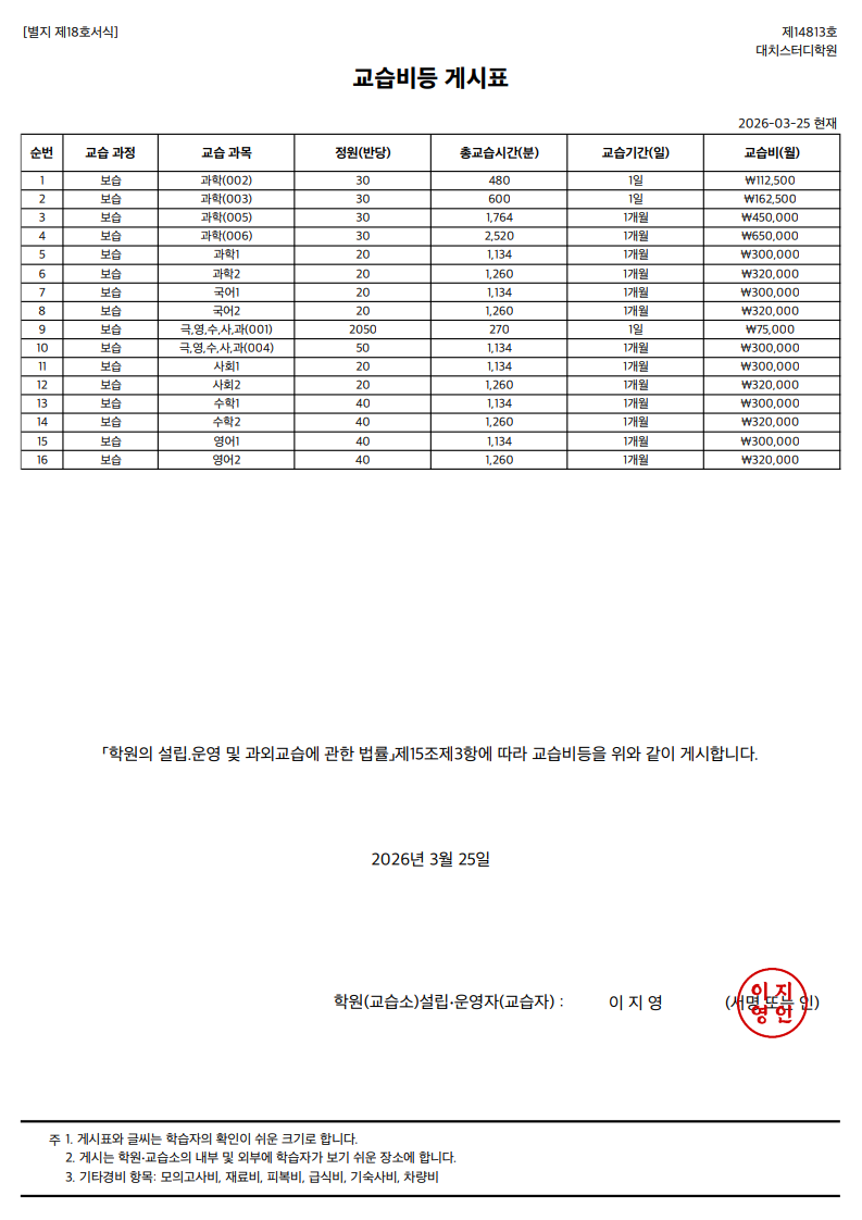 3. 환불 학습비는 할인 전 정가 금액을 기준으로 정산한다.