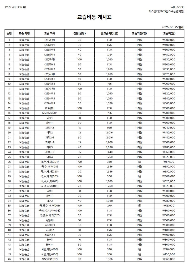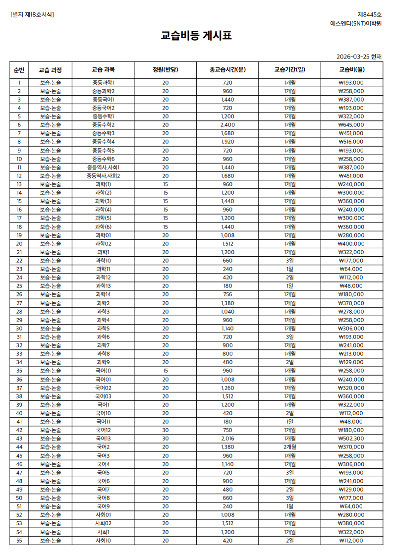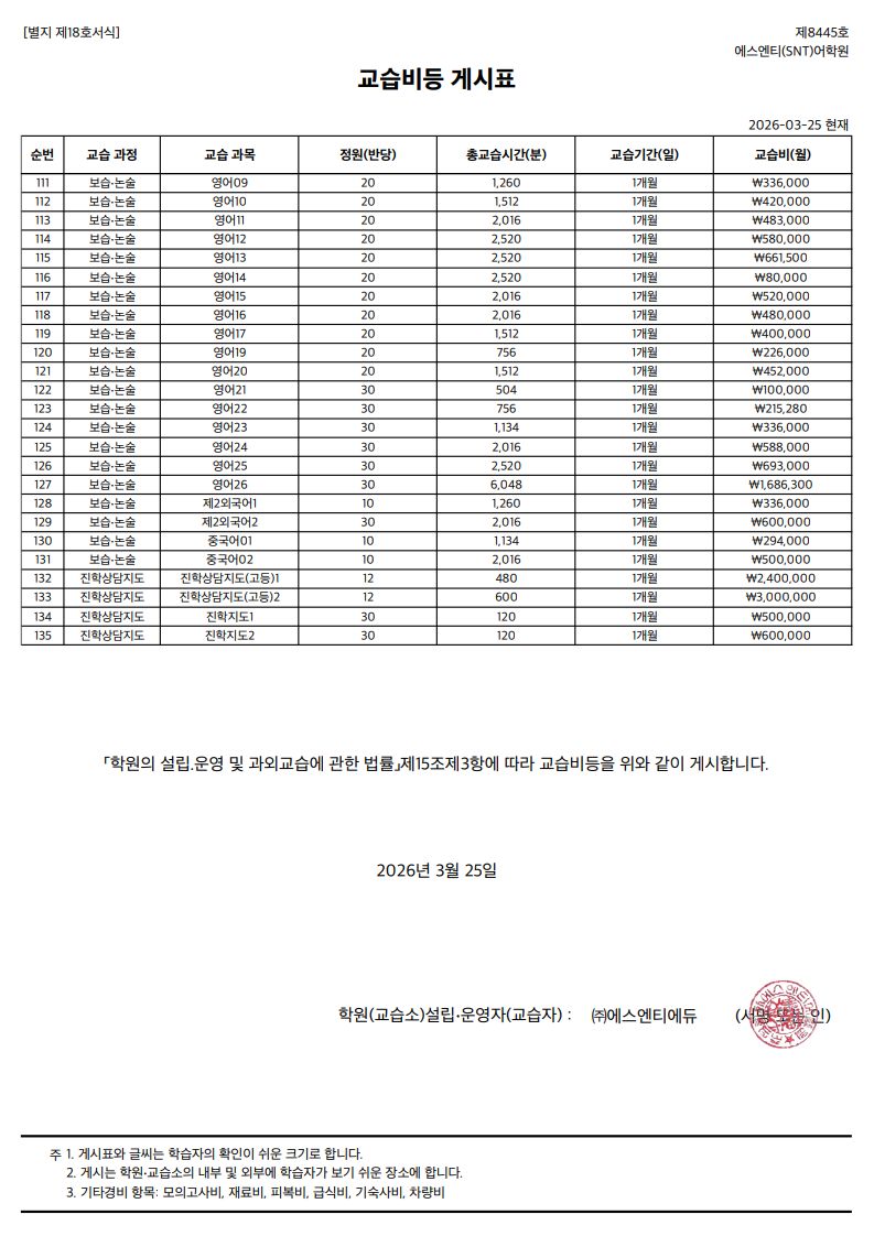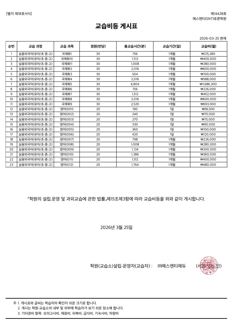 3. 환불 학습비는 할인 전 정가 금액을 기준으로 정산한다.