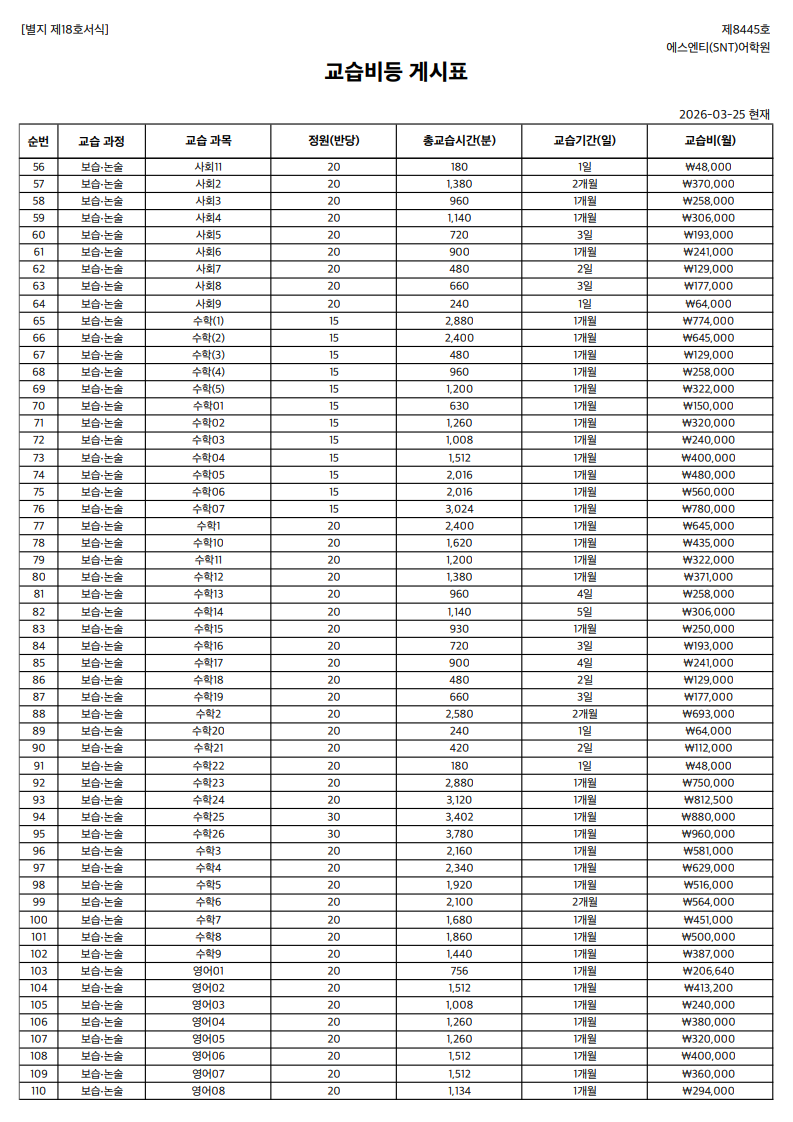 제26조 (온라인 강좌 교습비의 환불 및 변경)