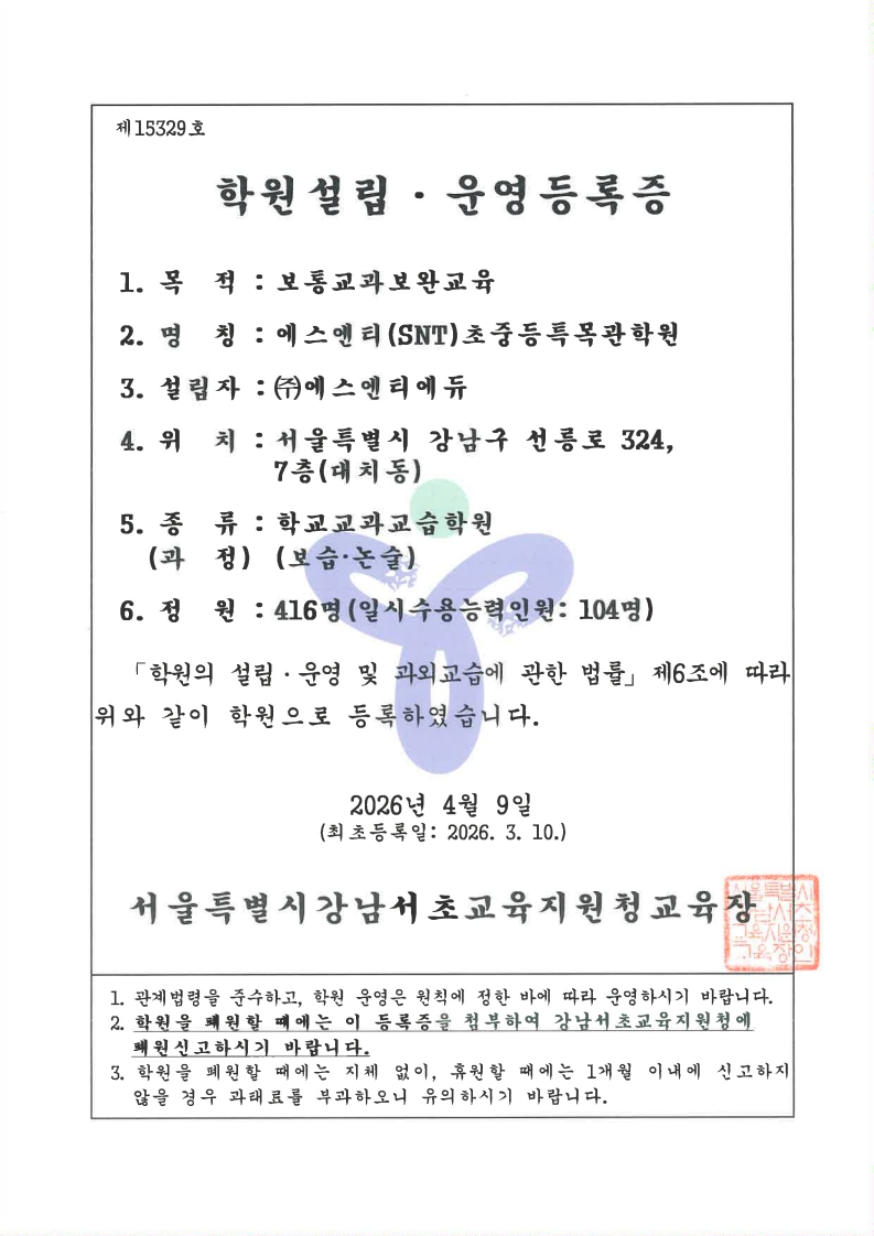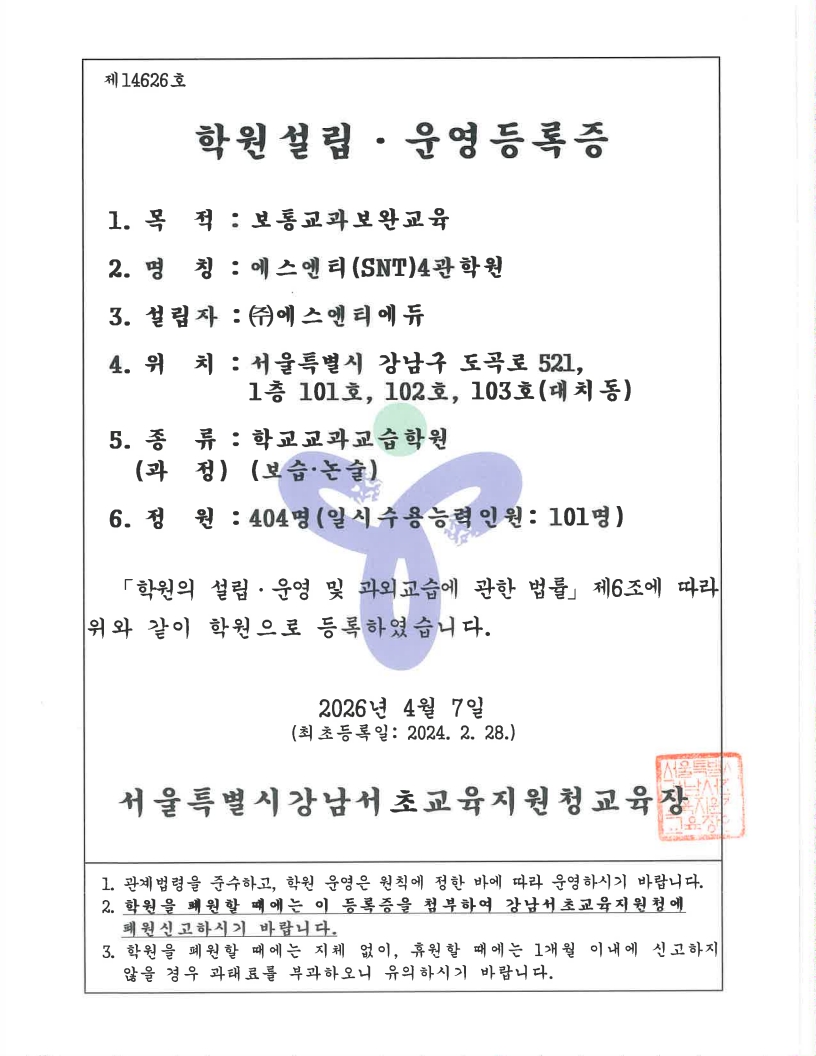 이 약관은 (주)에스엔티어학원(이하”회사”라 함.)이 제공하는 종합교육정보서비스(이하 “서비스”라 함)의 이용에 관한 조건 및 절차에 관한 기본 사항과 기타 필요한 사항을 규정하는 것을 목적으로 합니다.