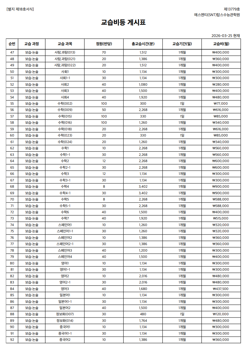 초중등특목관학원